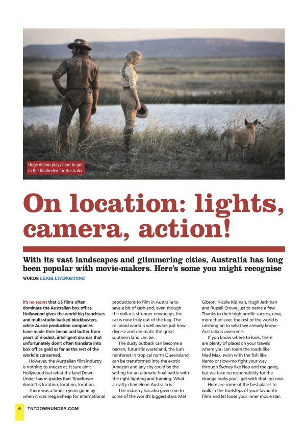 Movie Location Feature pg 1 Published October 20, 2013 at 600 × 848 in Print Portfolio Next → On location: lights, camera, action! (TNT Downunder) Like Loading...